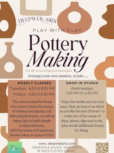 ๐บ - Deepwell Arts Pottery Drop In - Midweek Clay Therapy Without The Commitment